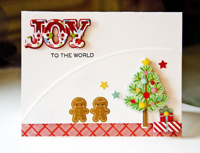 I've been spying my stamp set ever since I pulled it from it's storage space because I wanted to make a pine tree branch card. Finally I got around to doing it. I accidentally grabbed some stamping paper and was wowed by how crisp the image lifted off. I almost stamped the entire sentiment but at the last minute ended up die cutting some gold which I think it works really well here.